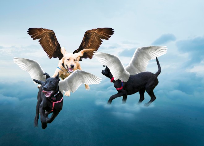 If dogs could fly, would they bark our friends ‘hello’ just over the rainbow bridge?