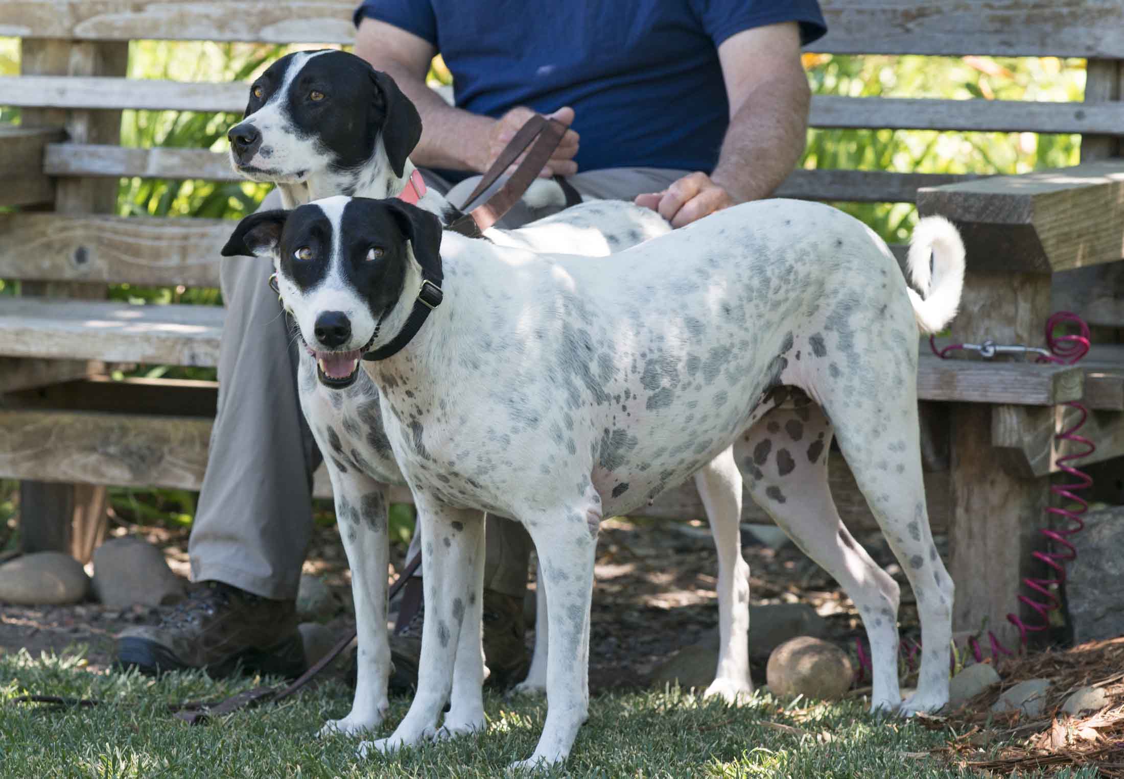 Lilly was one at the time, half-starved and missing a back paw. Lucy was an eight-month-old bag of bones, staying by the side of her mother and her latest litter of puppies. Erika and Gwen took them in, nursed them back to health, and they found a new home together. The two became inseparable.
