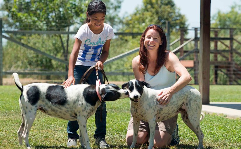 The family that adopted them had been waiting and searching for a bonded pair after losing their beloved pup two years ago. It took time for their hearts to heal, and then, they wanted to make sure that their children were old enough to respect and care for a dog. Connected through one of our volunteers, they came to meet the girls last weekend. Wisely believing that the entire family needed to be on board with their adoption, they took some time to think it through. Our hopes were answered when the answer came: “yes!” While the kids were under the weather, their mom, Meg, could wait no longer. This weekend, she drove back with her daughter’s friend (a future rescuer, we are sure!) to take Lilly and Lucy home.