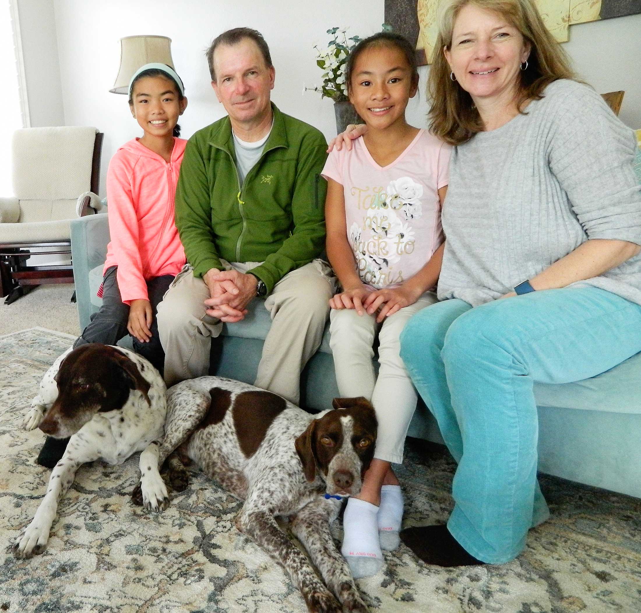 Over New Year’s, one of our volunteers brought her neighbors out to meet Gage. This special family was already involved with Pointer rescue, and were the adoptive parents of two beautiful (human) girls. They had recently lost one of their Pointers. While they weren’t sure if they were ready, they found Gage’s story compelling.