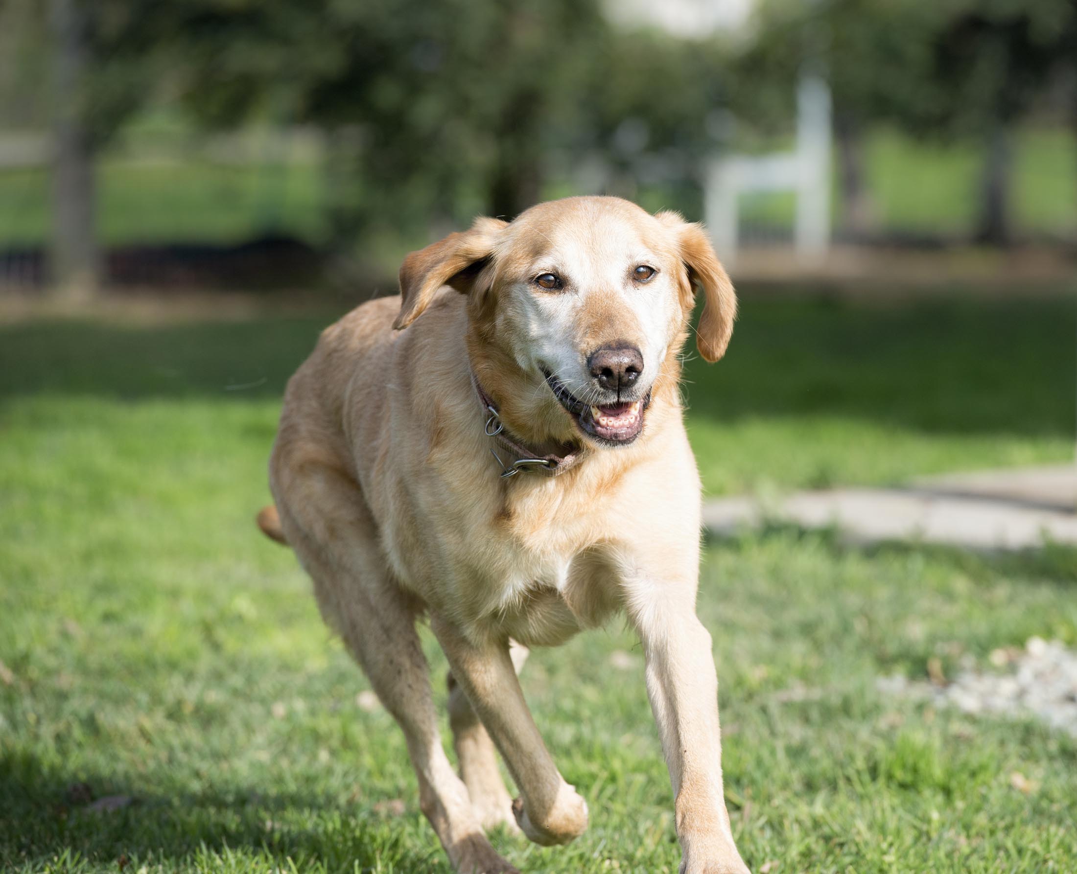 The dogs had bonded through adversity despite the difference in their ages. Still, their needs were very different. Once freed, Sadie worked hard at keeping up with Gage who ran like the wind. At 13, a leisurely walk was more her speed.