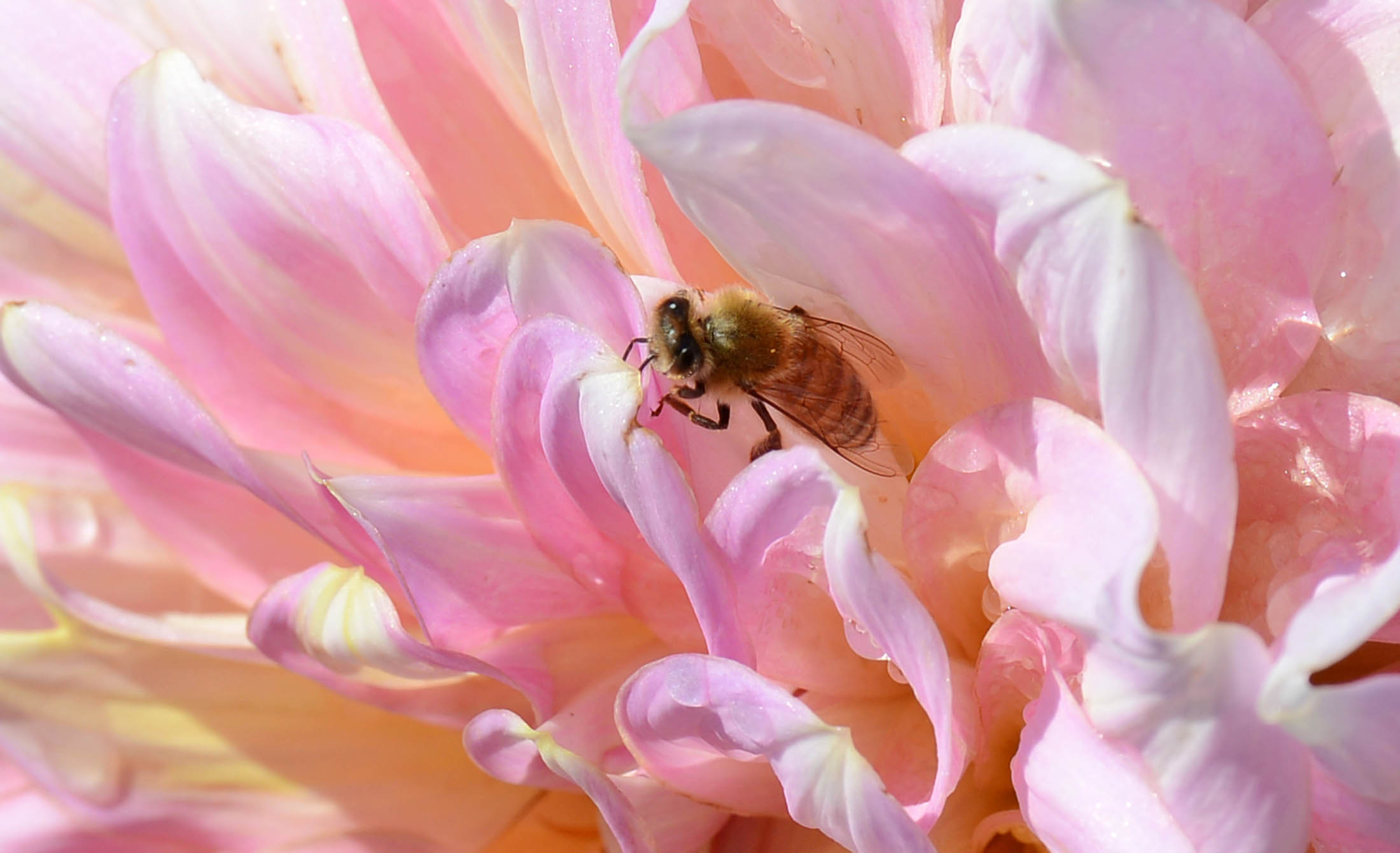 A honeybee stung me, stuck in me and wouldn’t let go. I read later that honeybees sting only once, leaving their stinger and venon sac in the victim. This results in their own premature death. Bumblebees, yellow jackets and wasps on the other hand can sting multiple times. That’s just wrong.