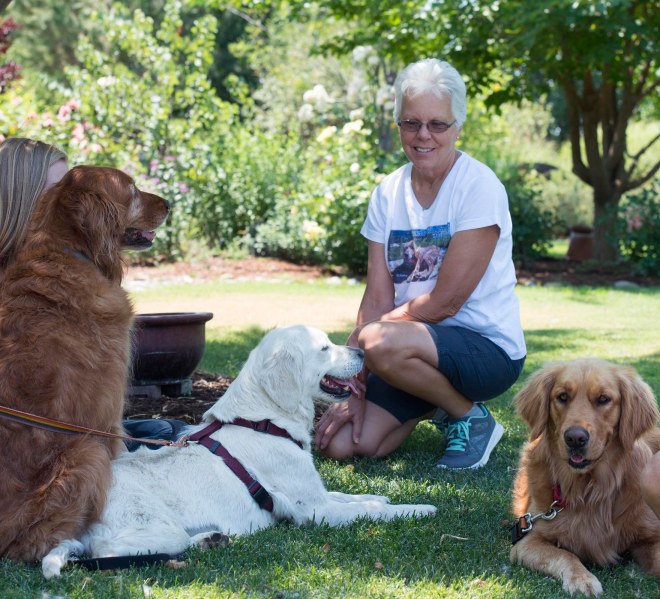 Three Golden girls were spared a life of puppy-making and will, instead, enjoy a life of love and play.