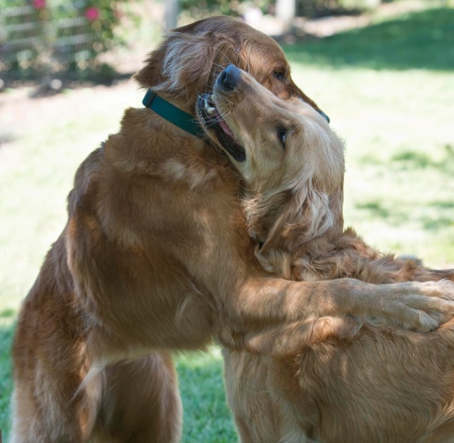 This weekend, she met a family of adults and their 18-month-old Lab, Harper. They had all been grieving the loss of their senior dog; Harper was feeling lost. Shy at first, we left Harper and baby Sara in the yard together and watched from afar. Baby immediately started following Harper around and Harper seemed glad for her company. The match was made. Baby left with a smile on her face and didn’t even turn back to say goodbye. On the ride home, she snuggled close to Harper. And the happy updates have been flowing ever since.
